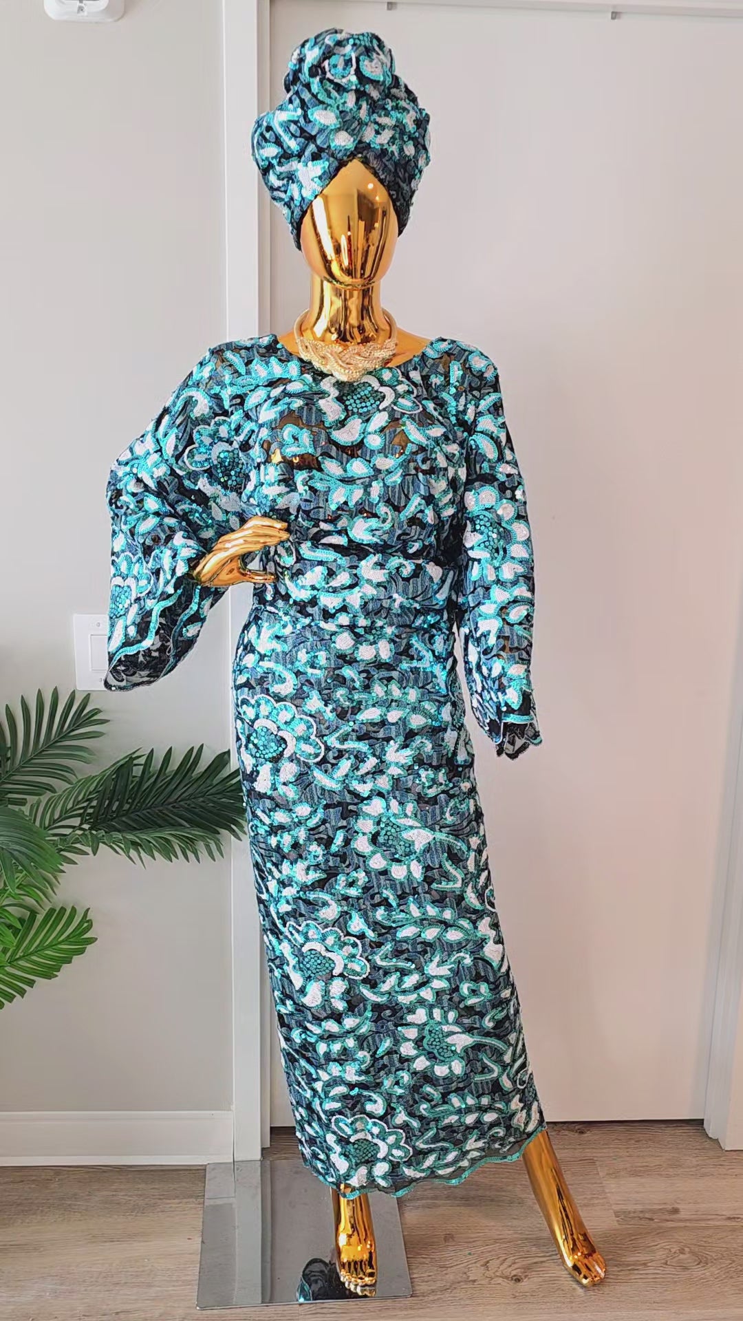 - Coordinating gele (headwrap) to complete your ensemble